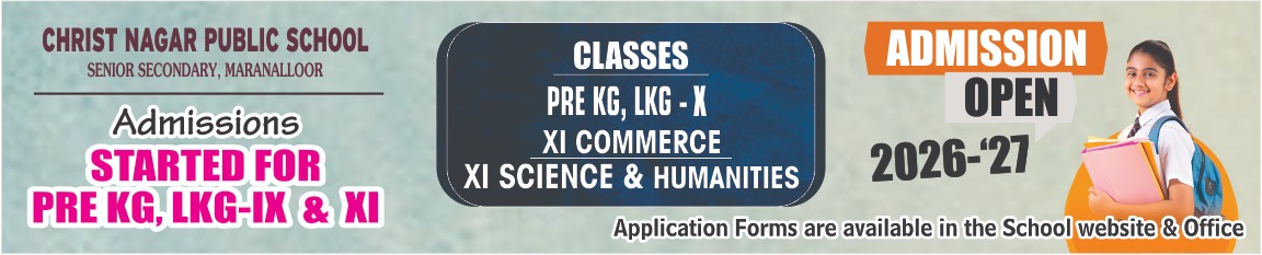 Christ Nagar Public School, under the CBSE, started functioning at Maranalloor in June 2015. As envisioned by St Kuriakose Elias Chavara, the founder of the CMI Congregation, CPS Caters to the aspirations of a fast changing society for quality education.